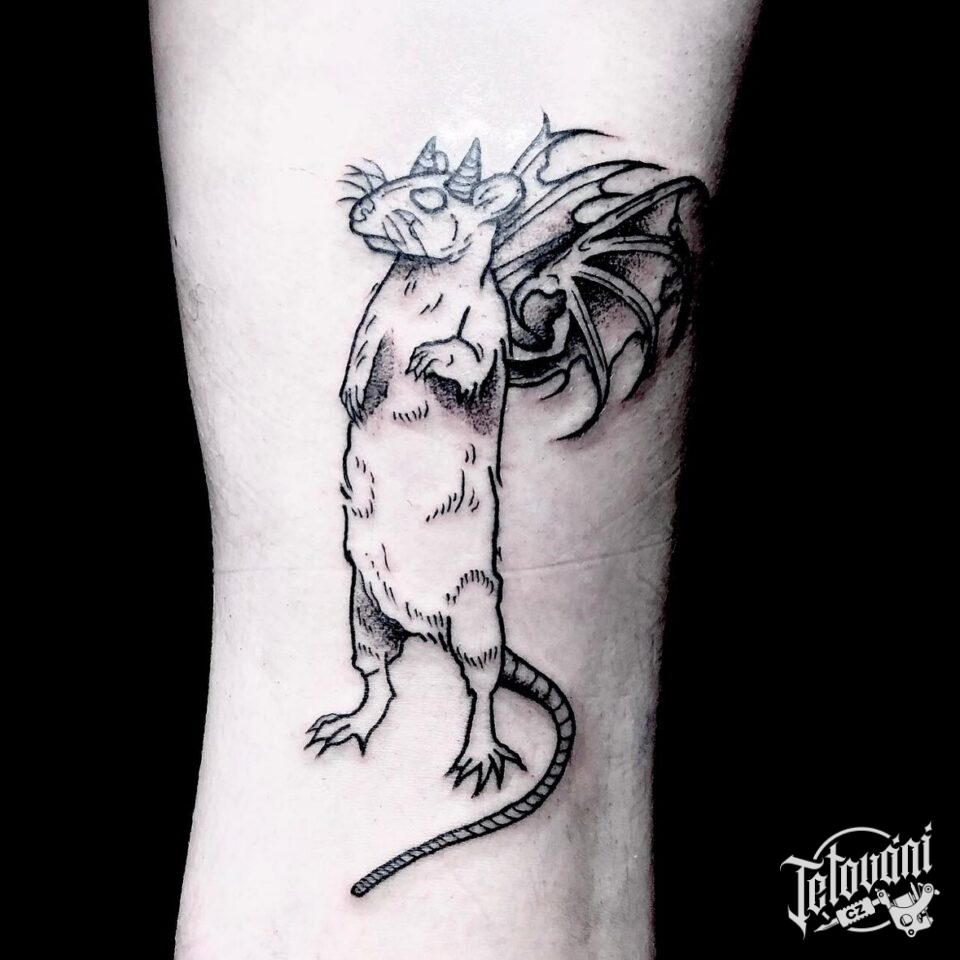 Tetování zvíře, myš s křídly na předloktí