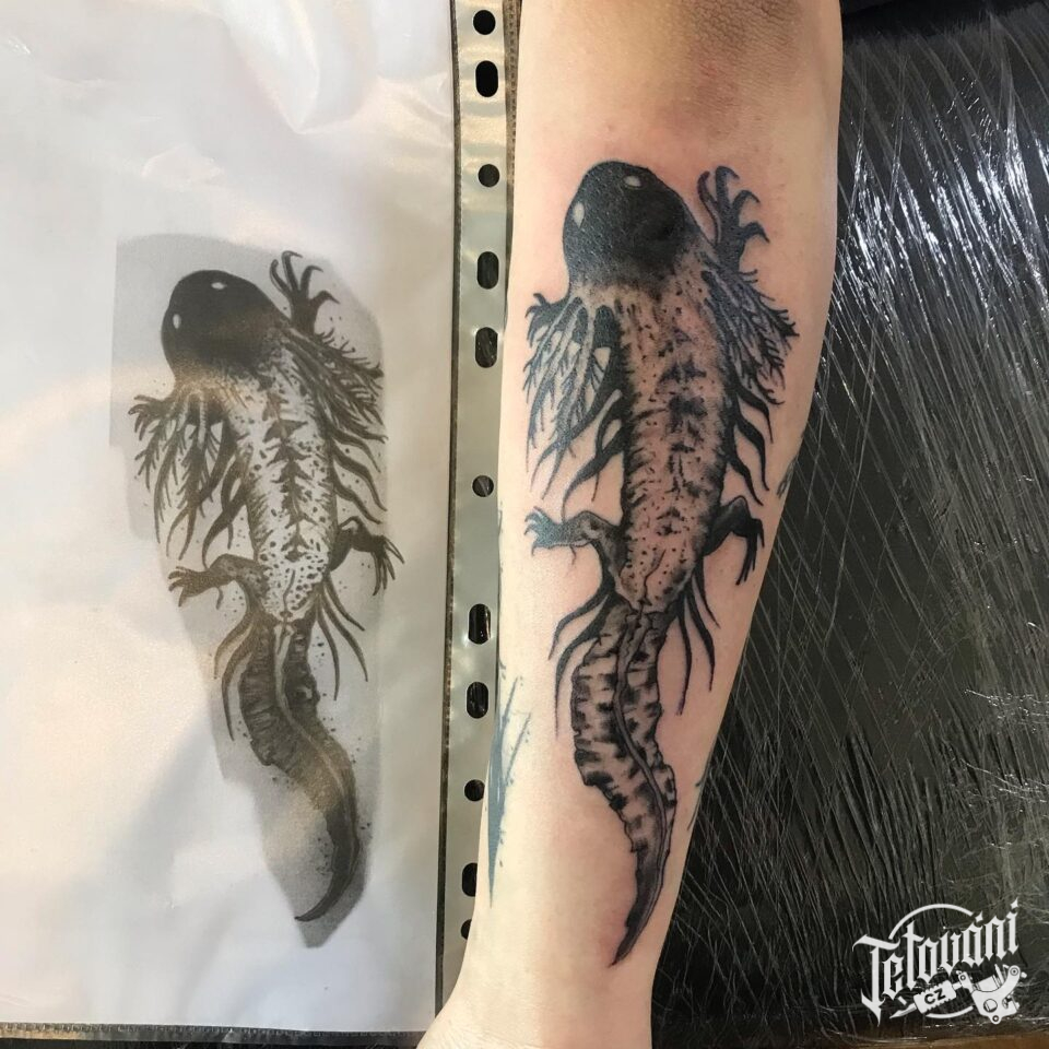 Tetování axolotl na před...