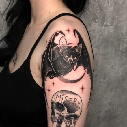 Tetování zvíře netopýr, Měsíc a Hvězdy na rameno