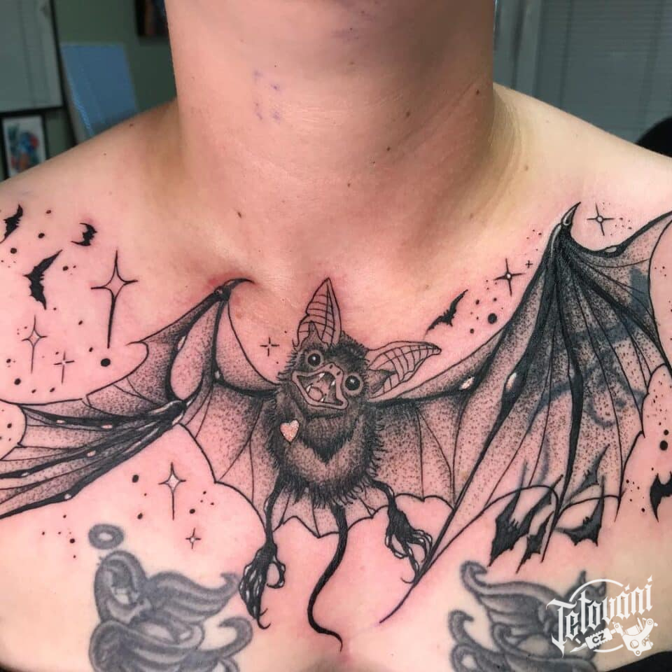 Tetování zvíře, netopýr na hrudi
