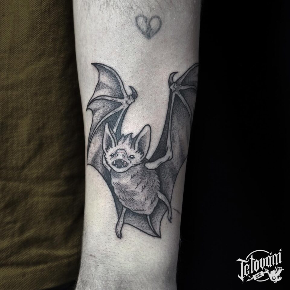 Tetování zvíře, netopýr na předloktí