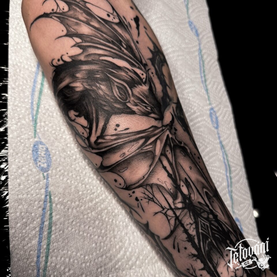 Tetování zvíře, netopýr na předloktí