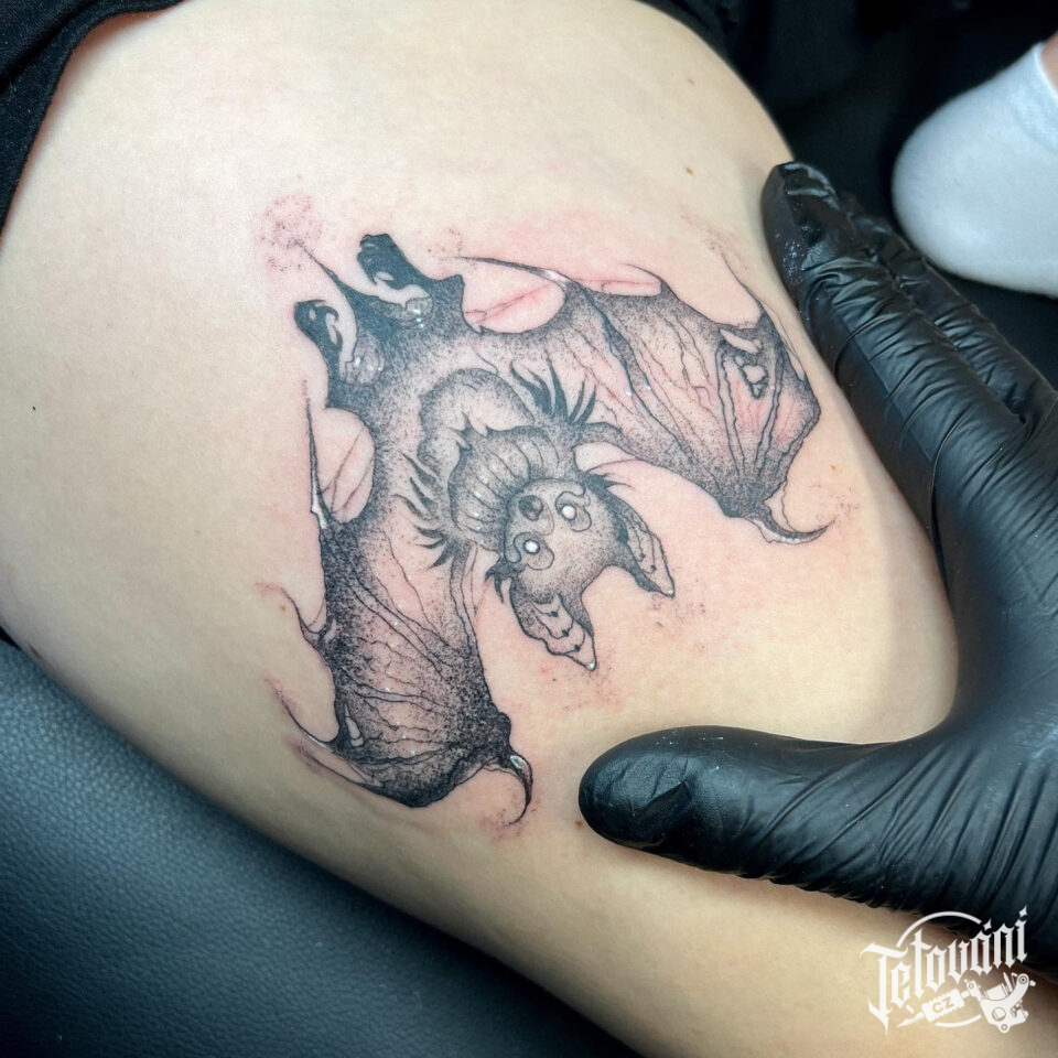Tetování zvíře netopýr na stehno