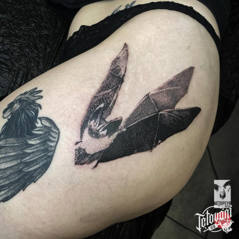 Tetování zvíře netopýr, symbol na bok stehna