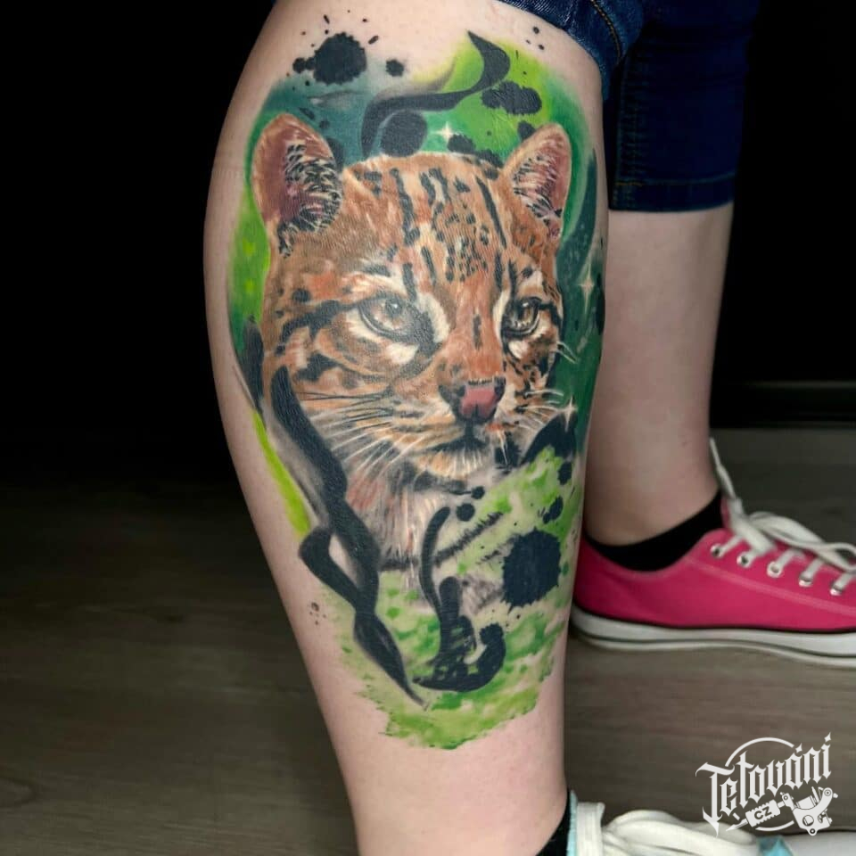 Tetování zvíře ocelot na holeň