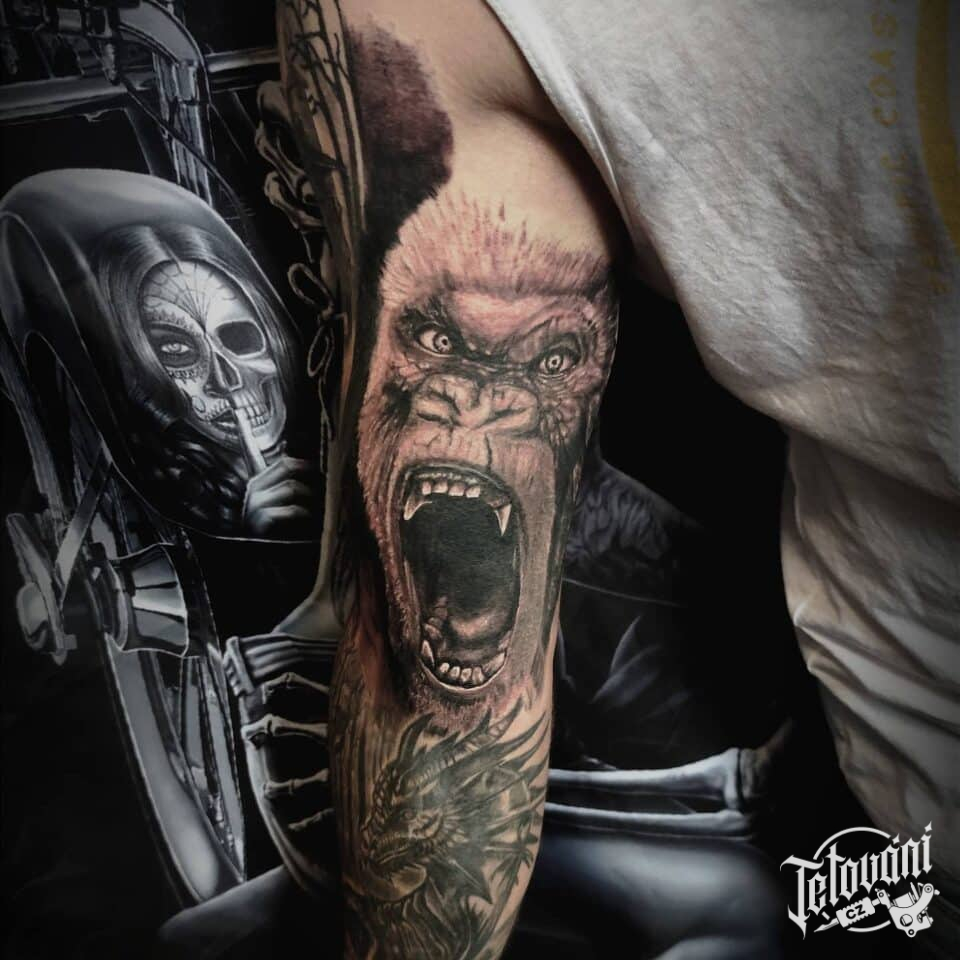 Tetování zvíře, opice, gorila na paži