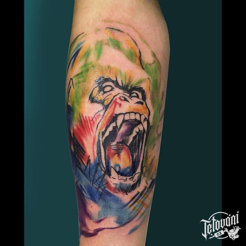 Tetování zvíře, opice, gorila na předloktí
