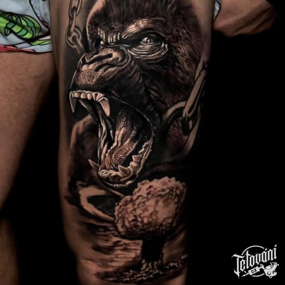Tetování zvíře, opice, gorila na stehně