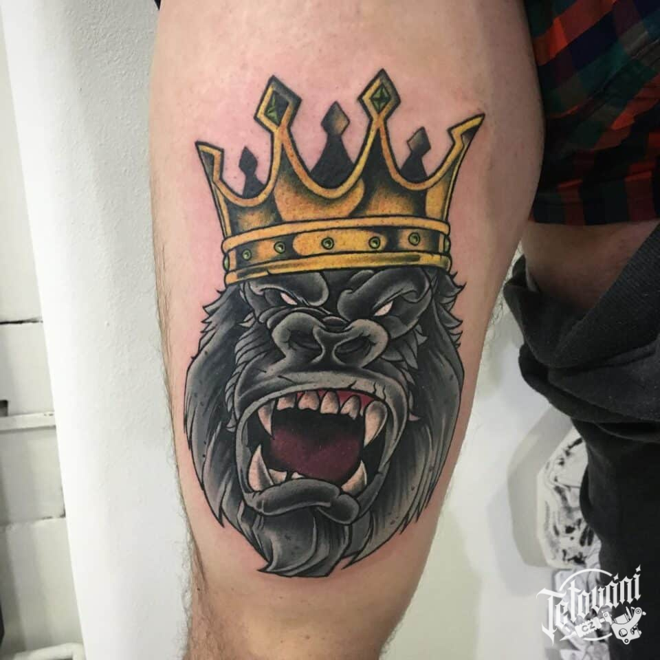Tetování zvíře opice s korunou na stehno