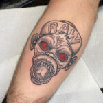 Tetování zvíře, opice s nápisem na lýtku