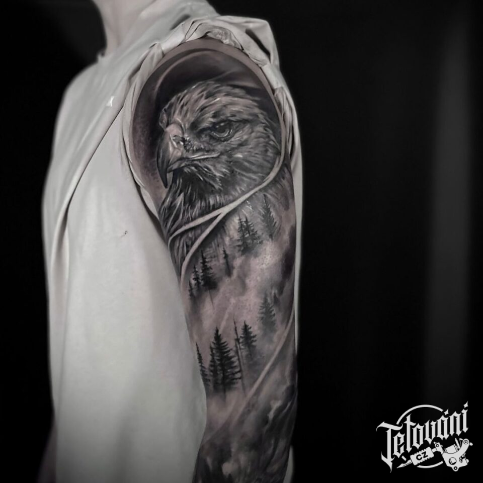 Tetování zvíře, pták, orel, příroda, les na rameni
