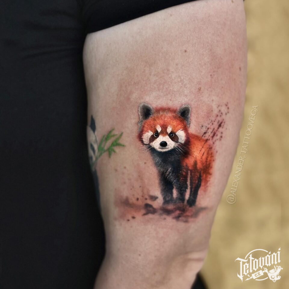 Tetování zvíře, panda červená na paži
