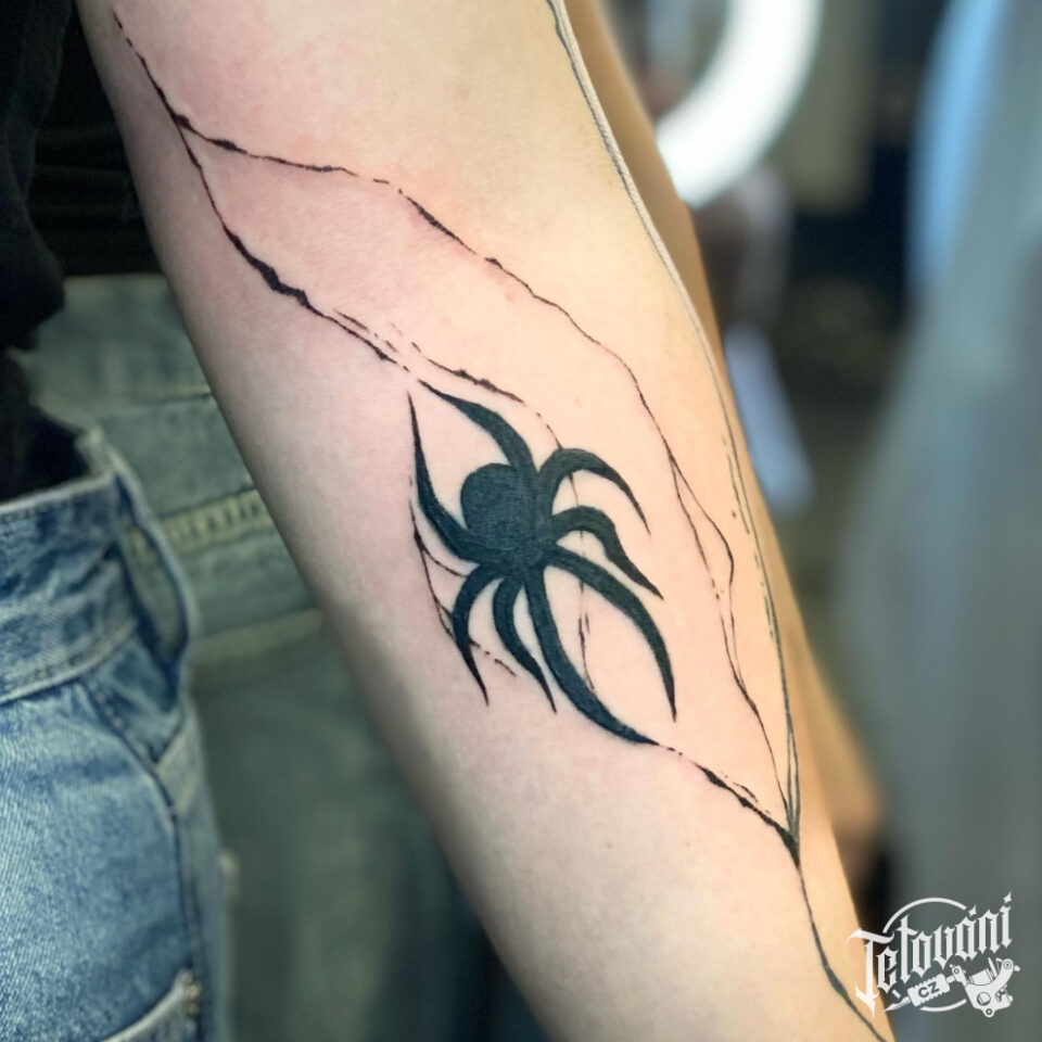 Tetování zvíře, pavouk a čáry na předloktí