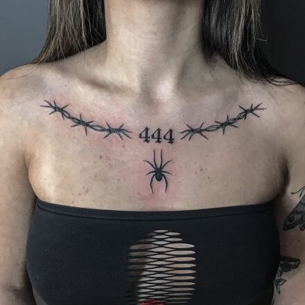Tetování zvíře, pavouk a ostnatý drát na předloktí
