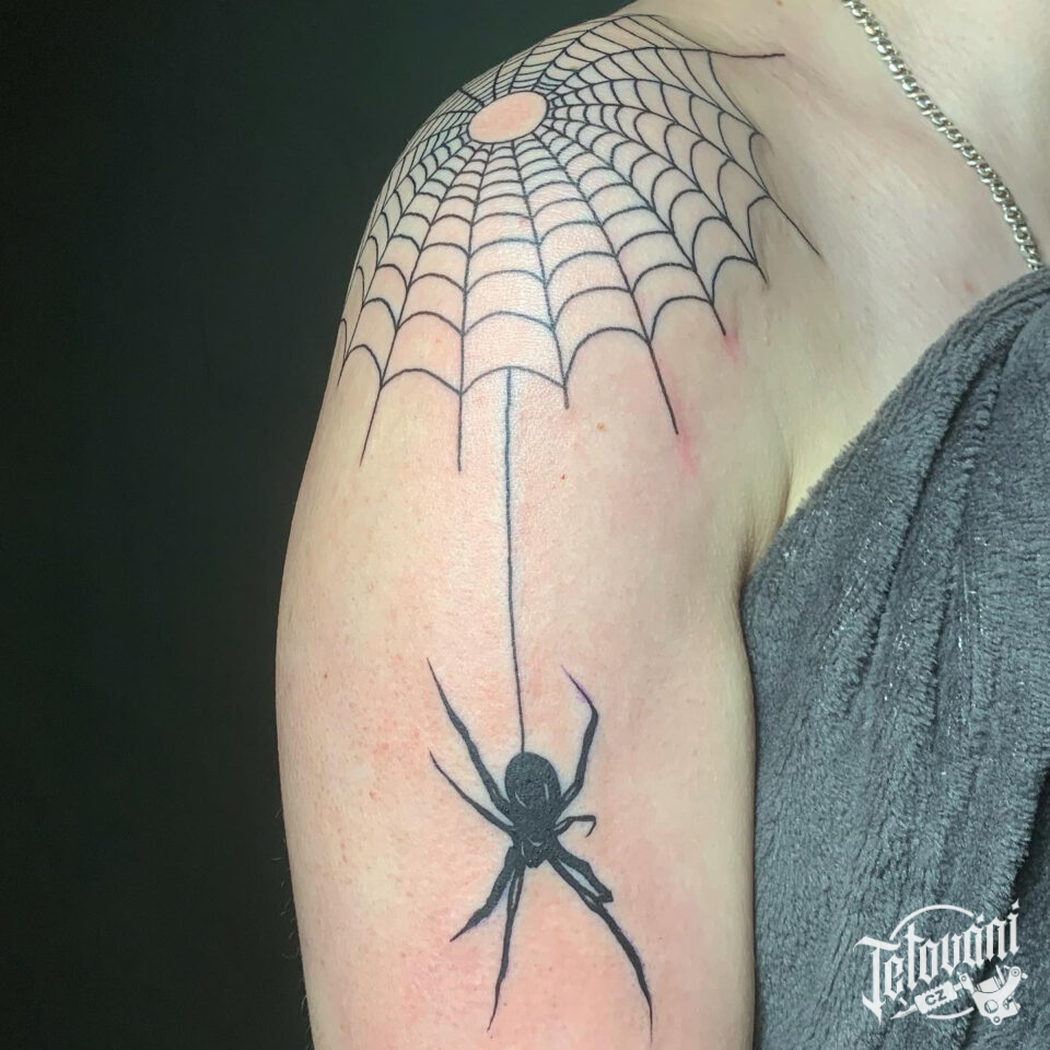 Tetování zvíře, pavouk a pavučina na rameni