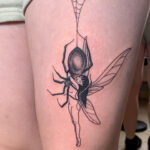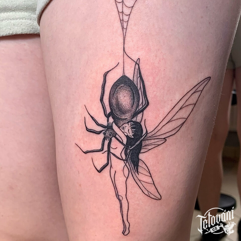 Tetování zvíře, pavouk a víla na stehně