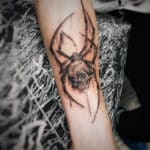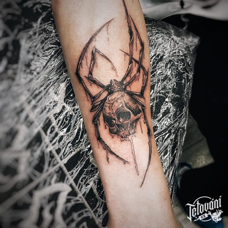 Tetování zvíře, pavouk s lebkou na předloktí