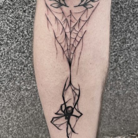 Tetování zvíře, pavouk s pavučinou na hřbetu ruky