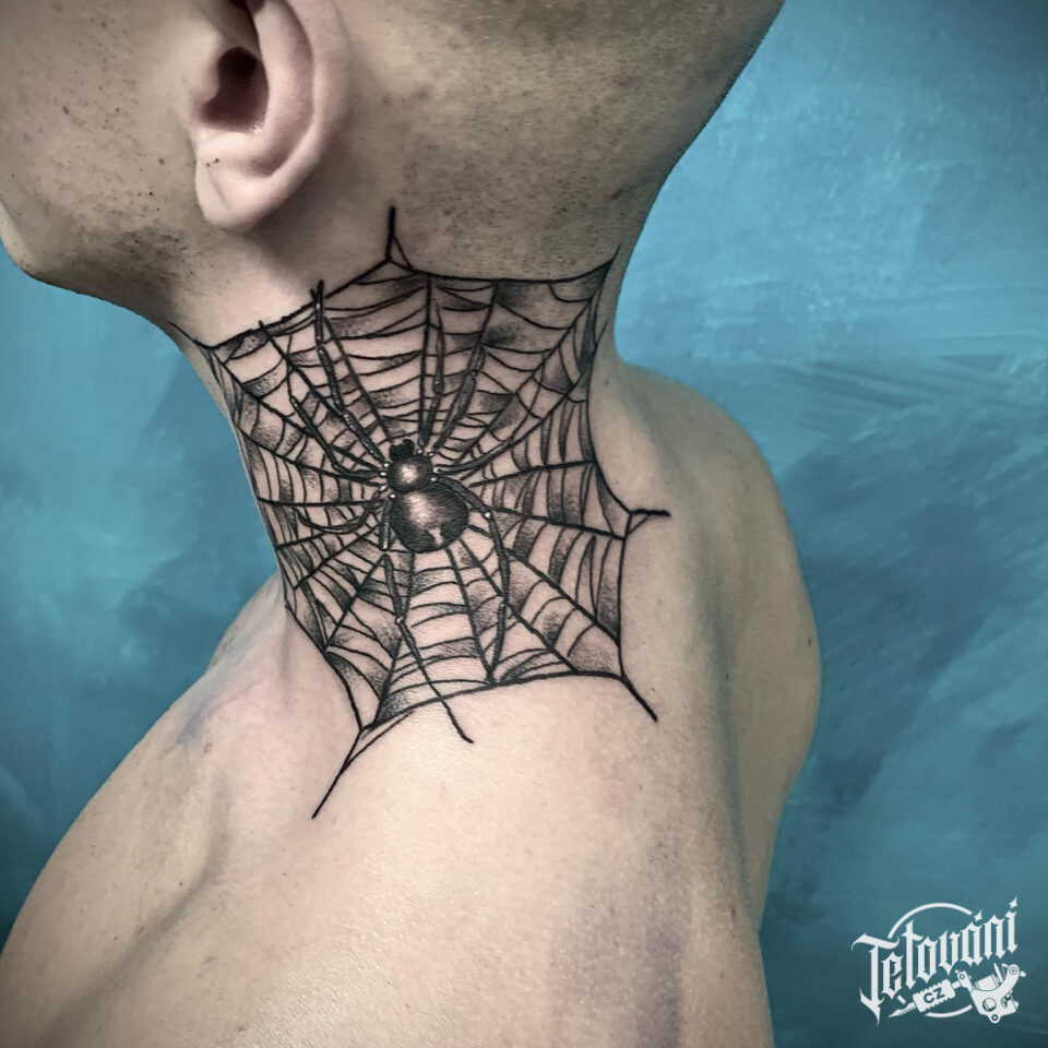 Tetování zvíře, pavouk s pavučinou na krku