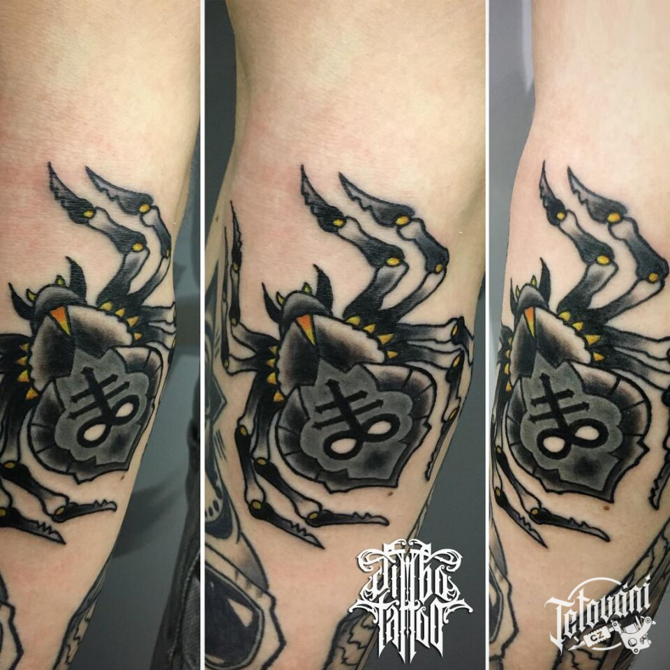 Tetování zvíře pavouk, symbol na předloktí