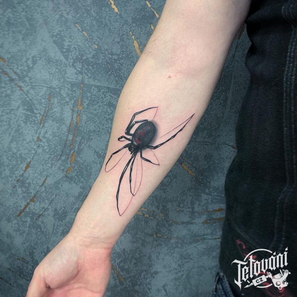 Tetování zvíře pavouk, symbol štěstí na předloktí