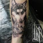 Tetování zvíře, pes a hory na předloktí