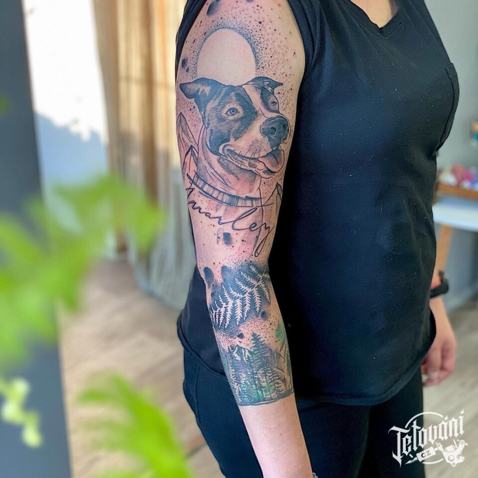Tetování zvíře pes a příroda, rukáv