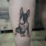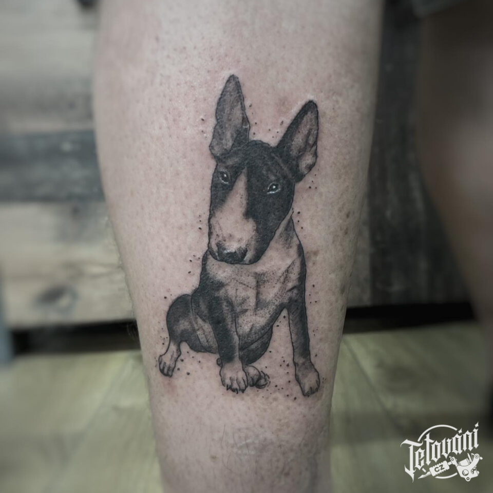 Tetování zvíře, pes, bulterér na stehně
