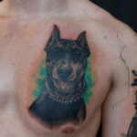 Tetování zvíře pes Doberman jako vzpomínka na prso