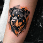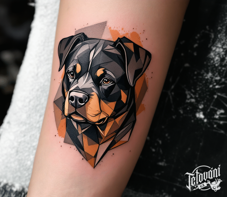 Tetování zvíře, pes, hlava rotvajlera na předloktí