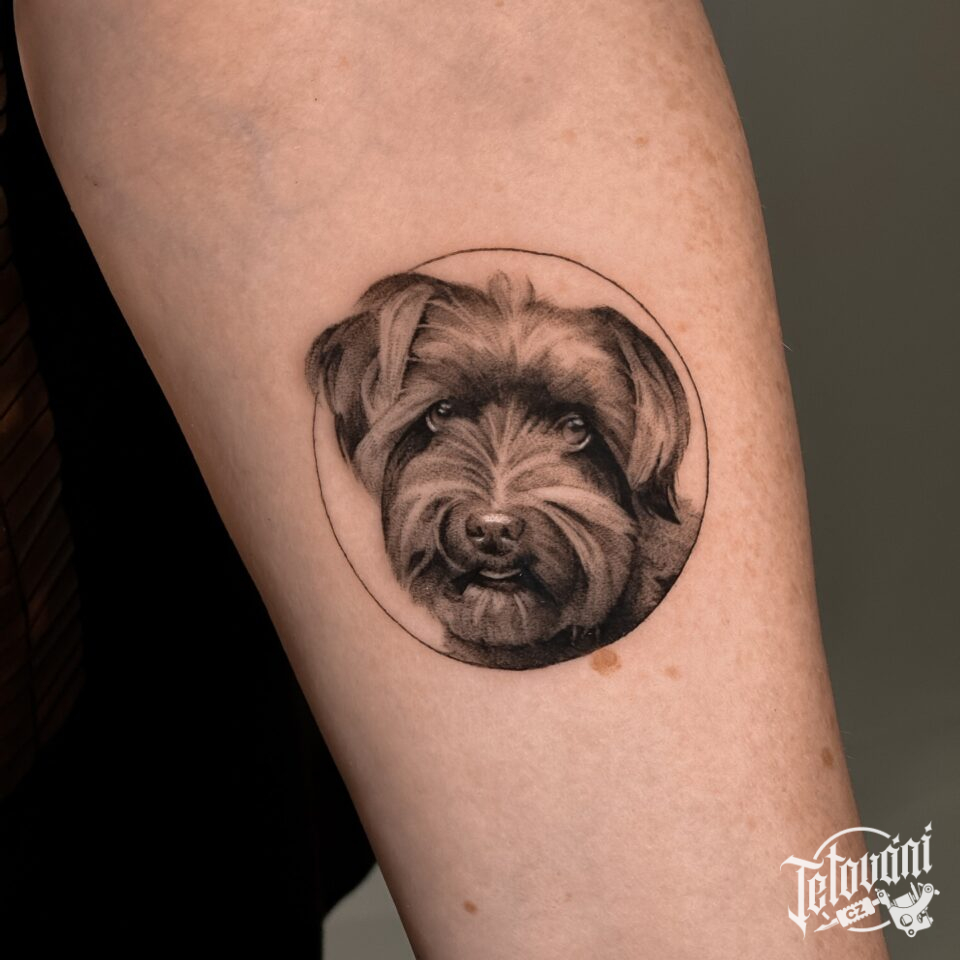 Tetování zvíře pes, kruh na předloktí