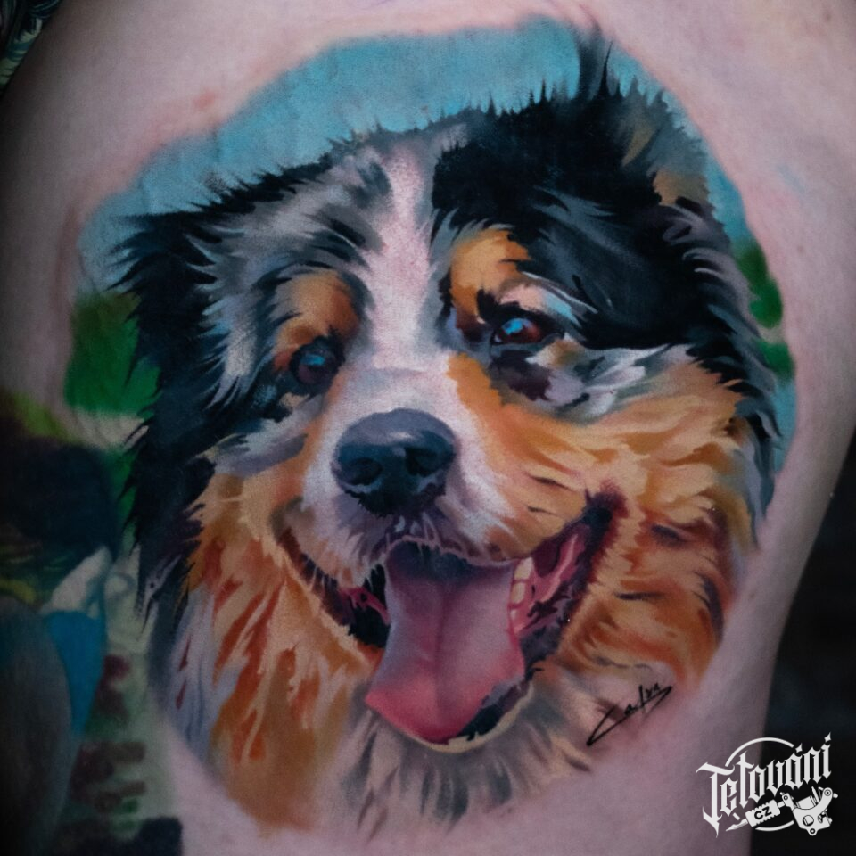 Tetování zvíře pes na bok stehna