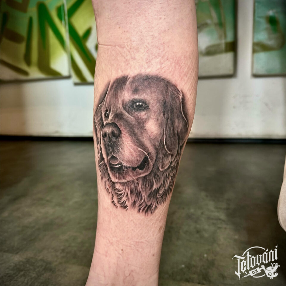 Tetování zvíře, pes na holeni