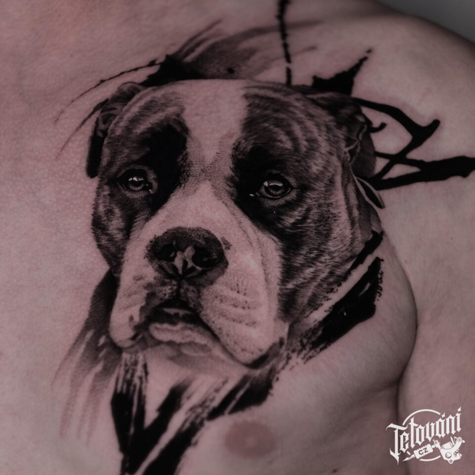 Tetování zvíře, pes na hrudi