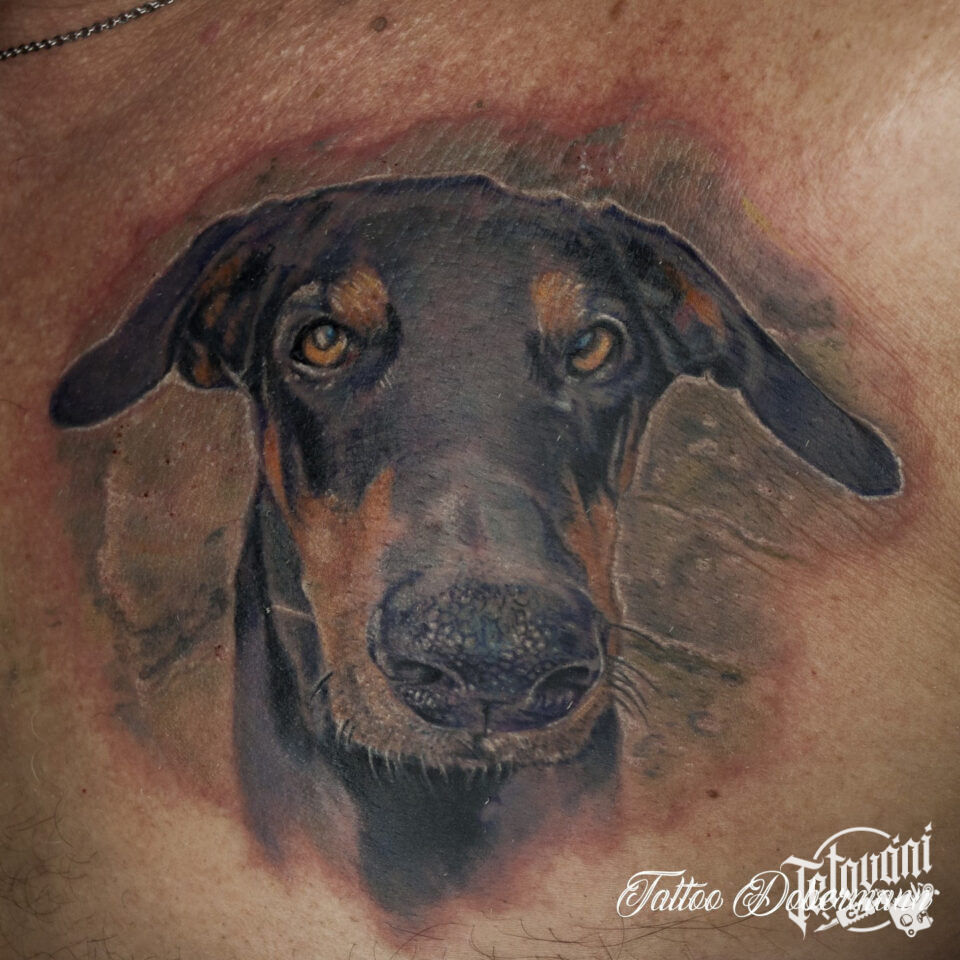 Tetování zvíře, pes na hrudi
