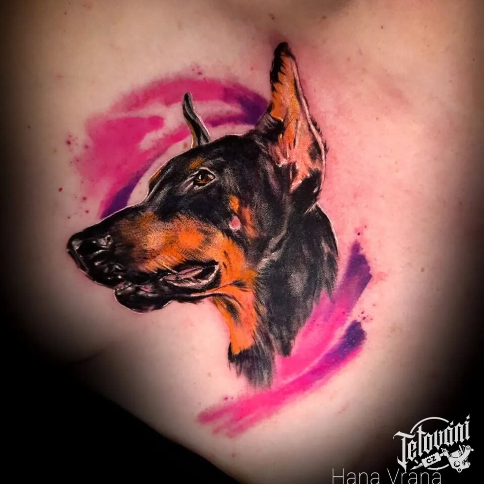 Tetování zvíře, pes na hrudi