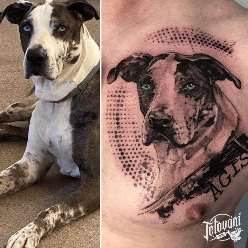 Tetování zvíře, pes na hrudi