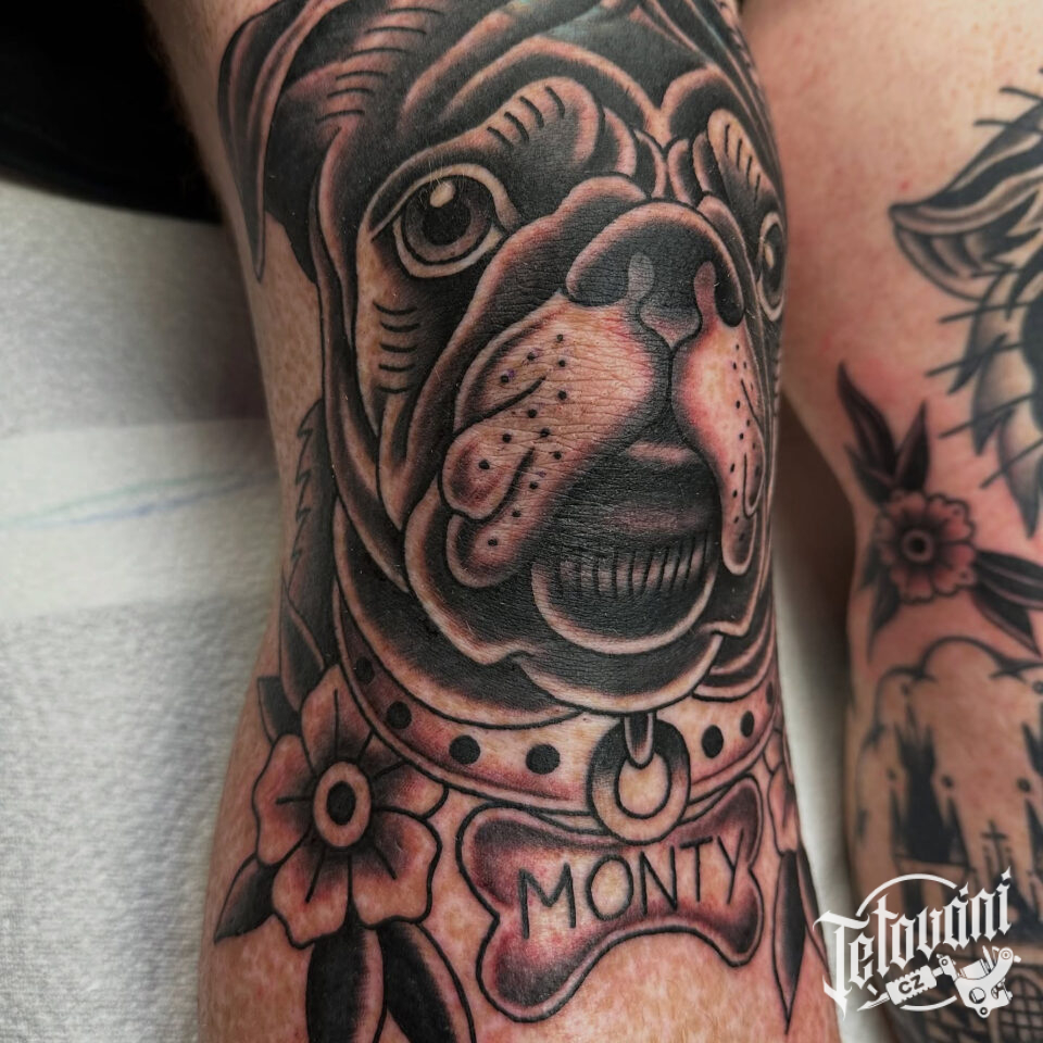 Tetování zvíře pes na koleno