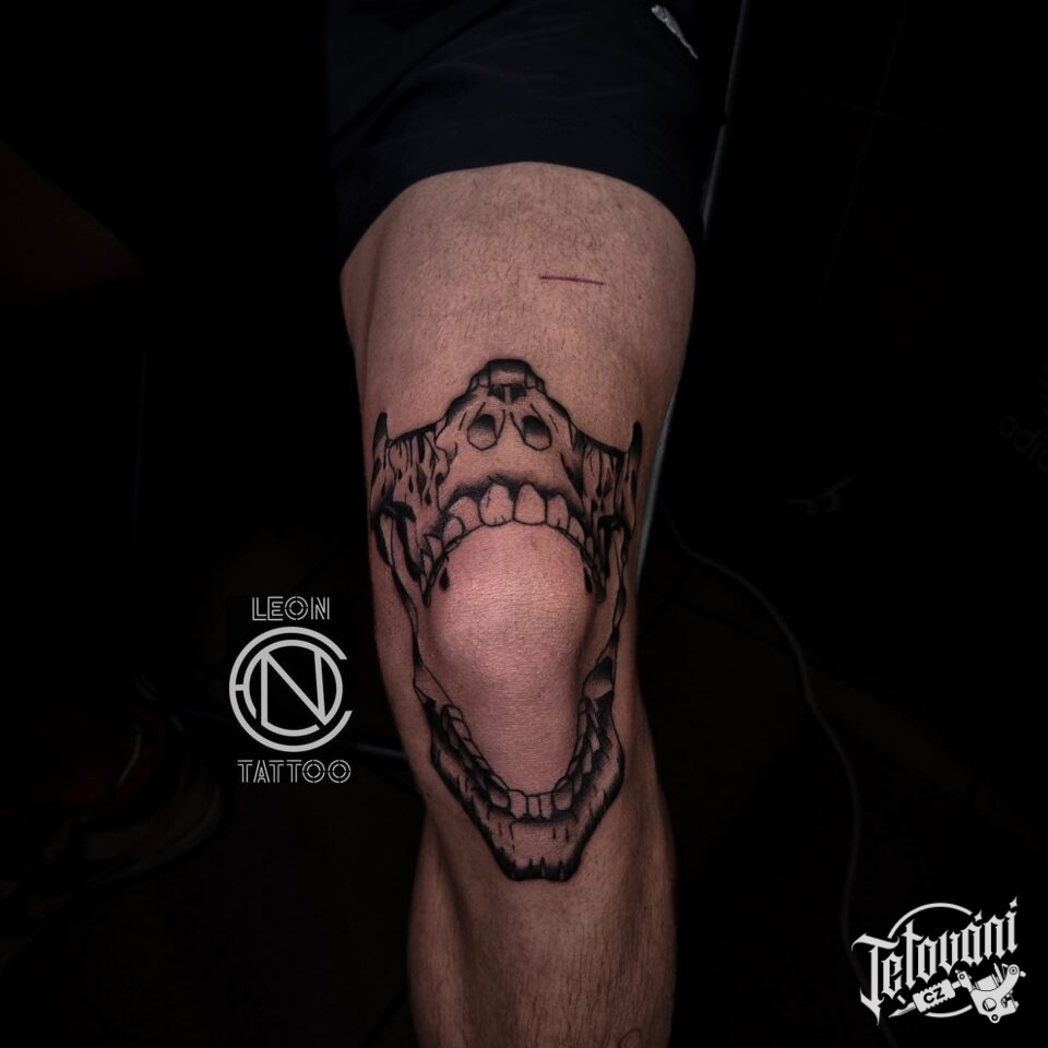 Tetování zvíře pes na koleno