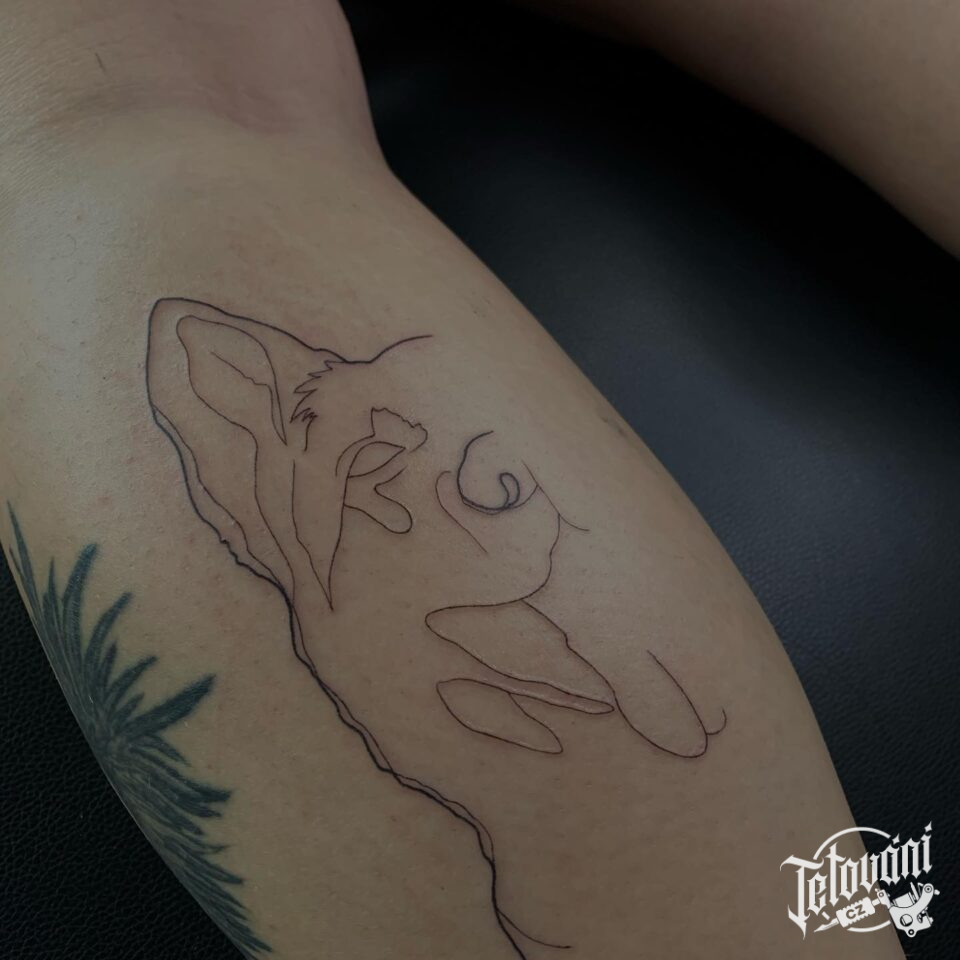 Tetování zvíře pes na lýtko