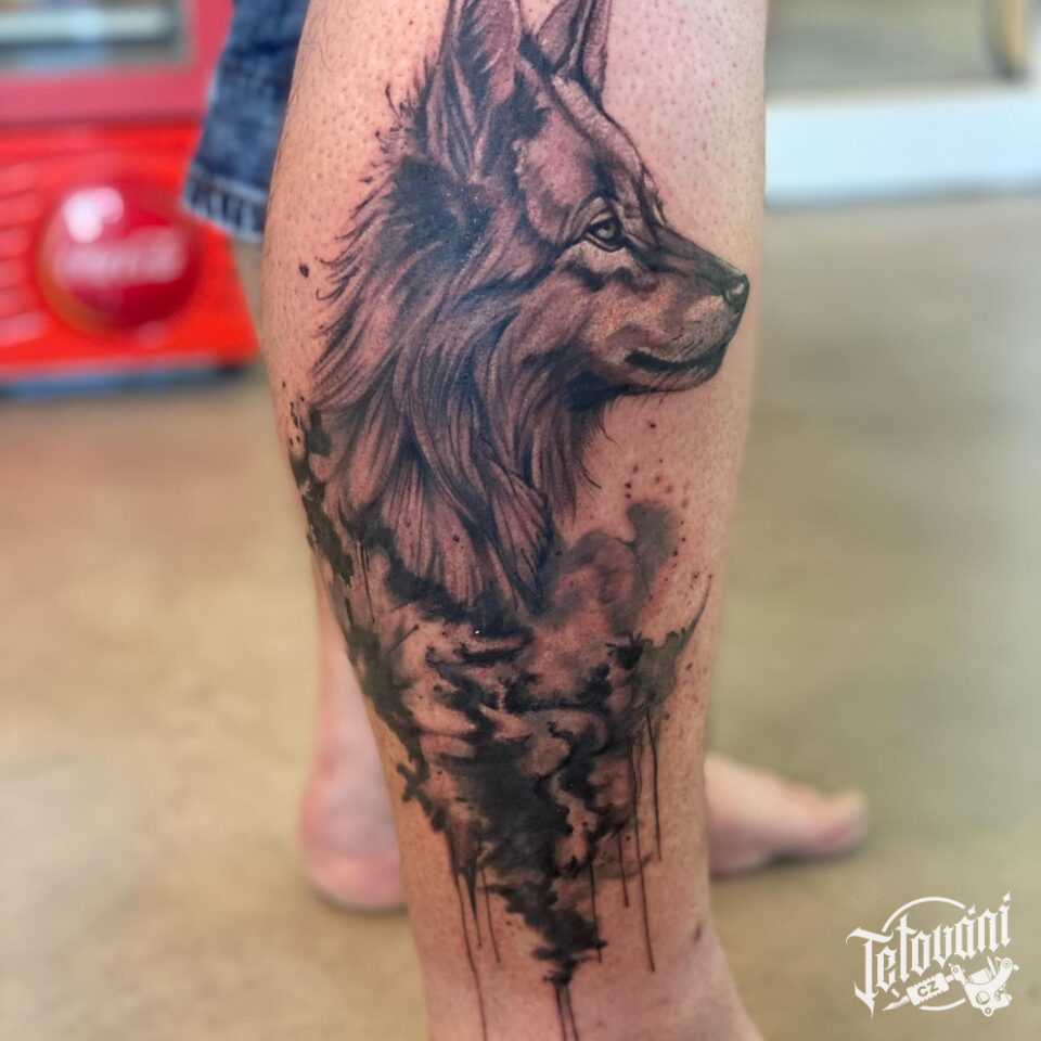 Tetování zvíře pes na lýtko