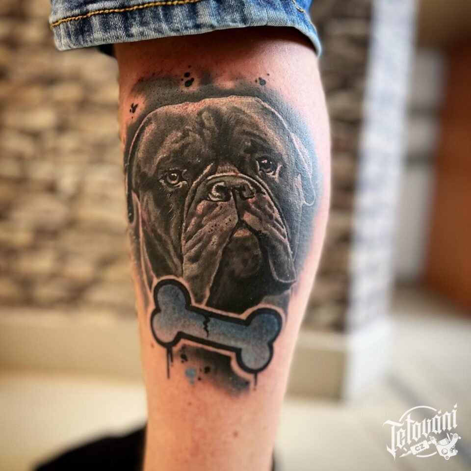 Tetování zvíře, pes na lýtku