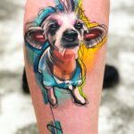 Tetování zvíře, pes na lýtku