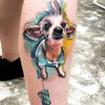 Tetování zvíře, pes na lýtku