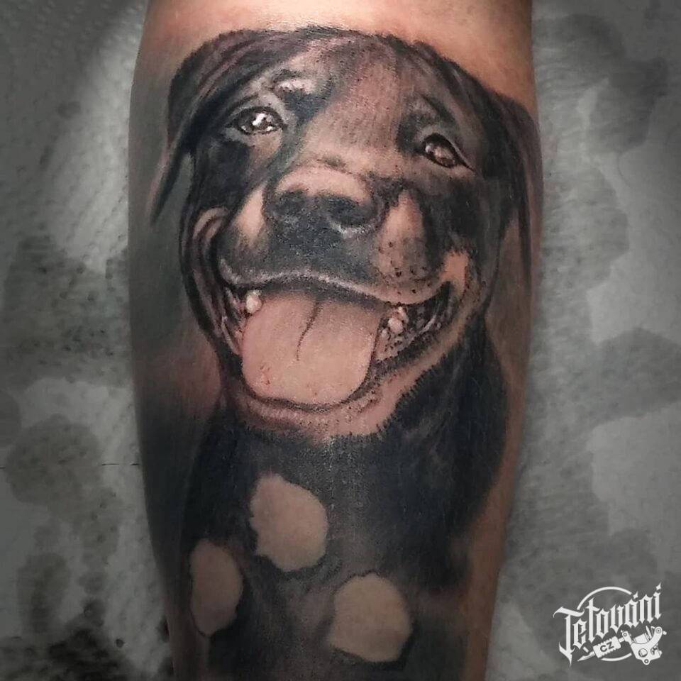 Tetování zvíře, pes na lýtku