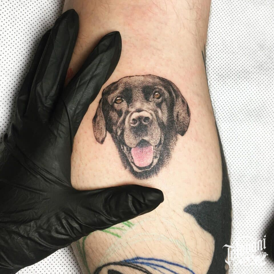 Tetování zvíře, pes na lýtku