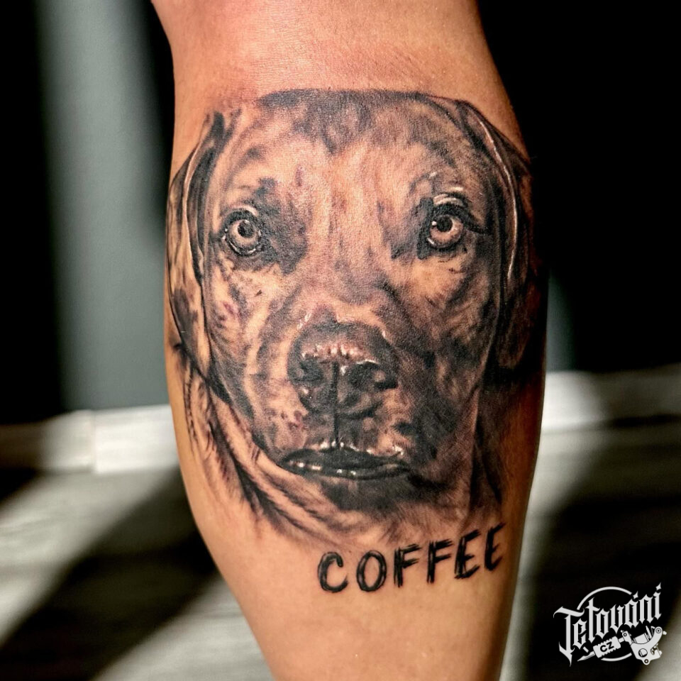 Tetování zvíře, pes na lýtku