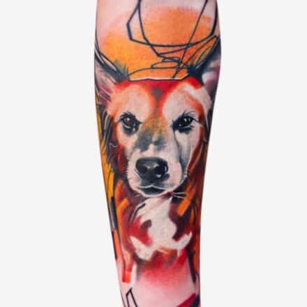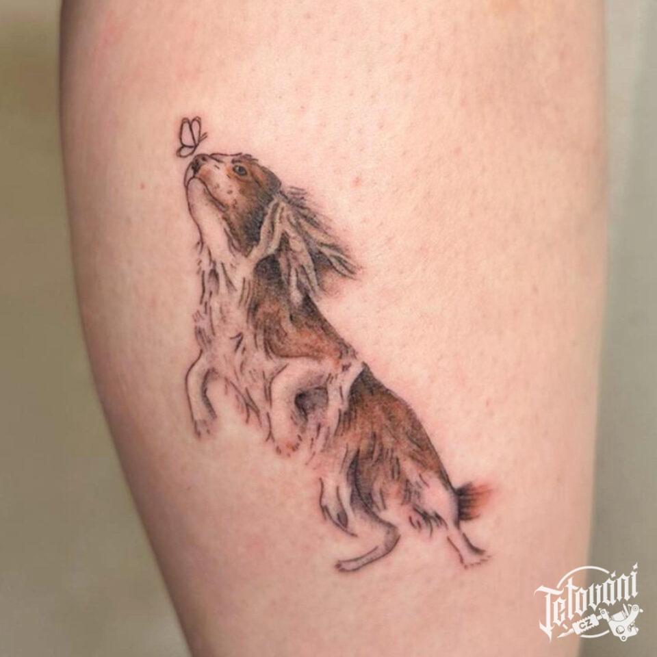 Tetování zvíře, pes na lýtku