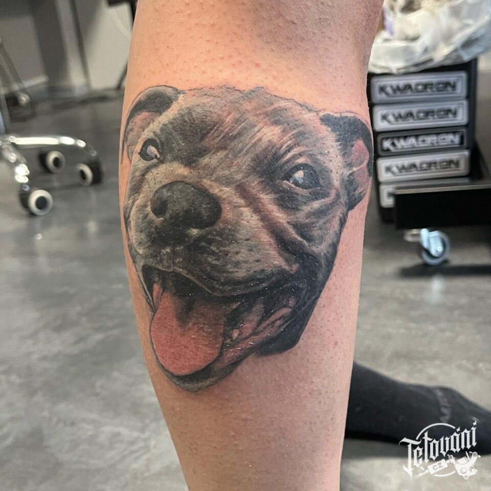 Tetování zvíře, pes na lýtku