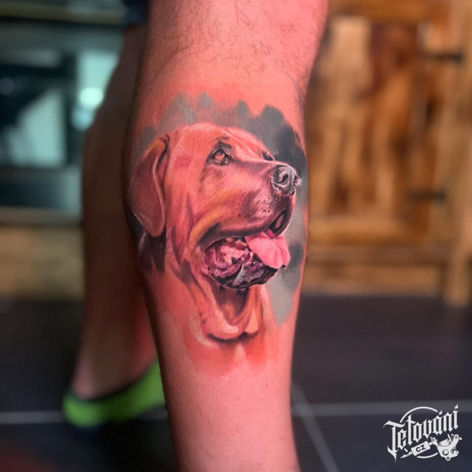 Tetování zvíře, pes na lýtku